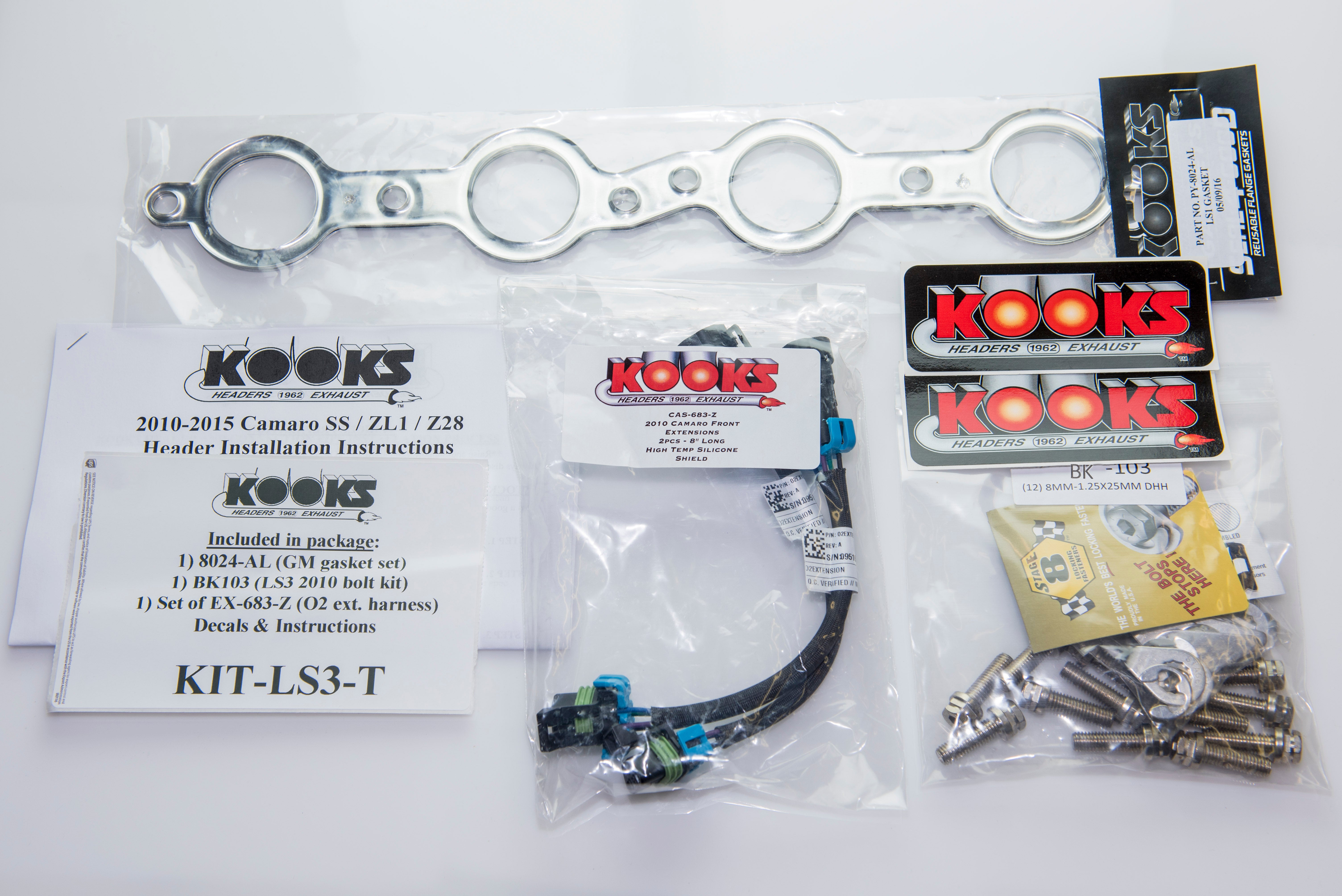 - Includes PY-8024-A Gaskets, 1) EX683-Z Oxygen Sensor Extension Harness Kit, BK110 Bolt Kit, and 2) Torca Swivel-Seal Clamps required for Installation